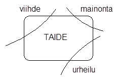 Millaiseksi kenttä jäsentyy tällaisen taidekäsitteen avulla? Seuraavaksi tarkastelen niitä yhteyksiä ja eroja, joita taiteella tällöin olisi lähialueisiinsa kuten viihteeseen, mainontaan ja urheiluun.