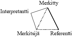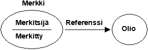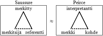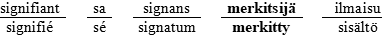 Joskus saatetaan puhua myös »merkitsevästä». <Esim. Kuusamo: Onko ikonin käsite semiotiikan reliikki?, s. 41–42>