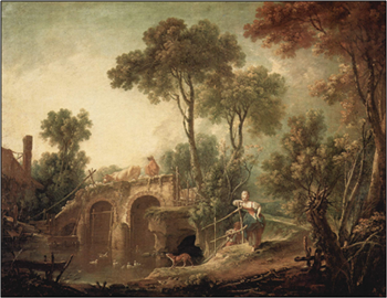 Myöhemmin Ludvig XV:n aikana taas pidettiin arvossa viehättävyyttä, ja taiteen sieluna oli aistillinen nautinto, esimerkkinä François Boucher'n maalaus Silta (1751):